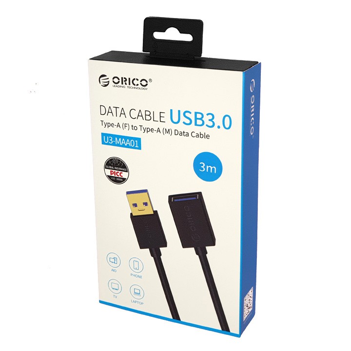Máy tính & Laptop > Thiết Bị Lưu Trữ > USB & OTG || Cáp USB 3.0 nối dài Orico U3-MAA01 1-1.5-2-3m PK03Còn hàng