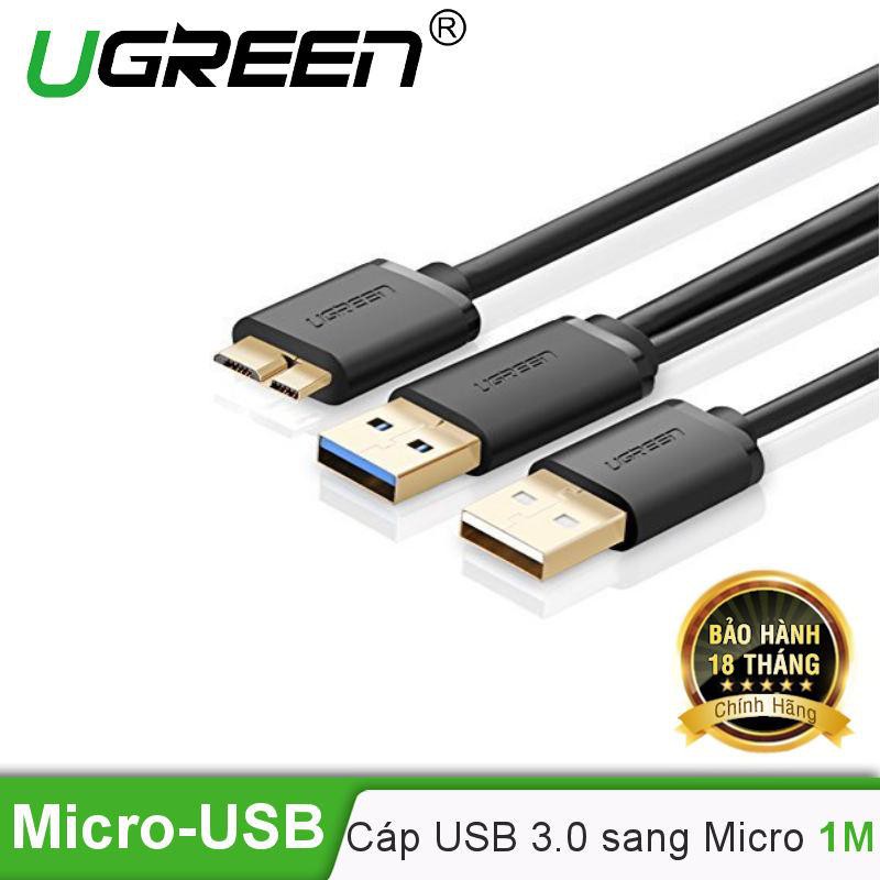 Cáp USB 3.0 sang Micro USB 1M hỗ trợ cổng USB nguồn UGREEN 10382 Chính hãng US140 màu đen