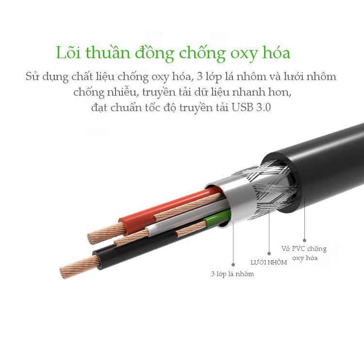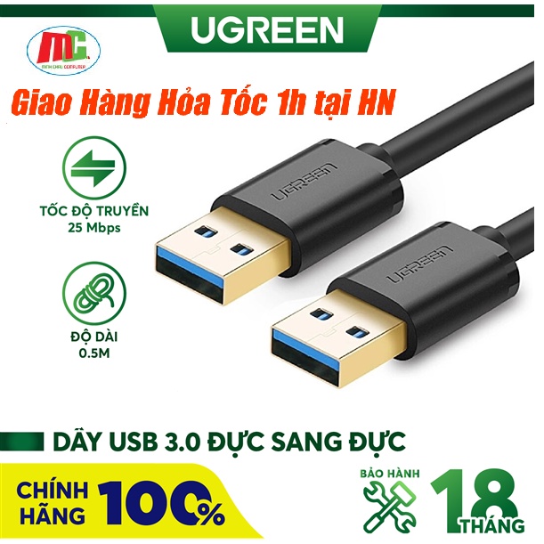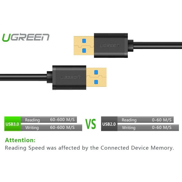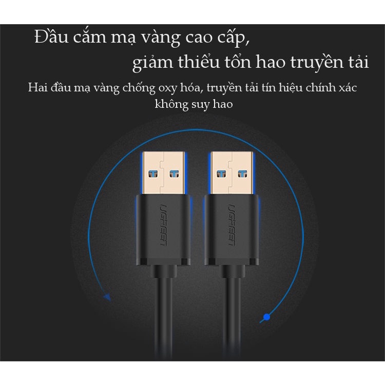 - Cáp USB 3.0 hai đầu đực dài cao cấp Ugreen Chính Hãng dùng để kết nối máy tính với ổ cứng, quạt tản nhiệt, bộ chia Hub USB hoặc cáp nối dài USB 3.0 và nhiều thiết bị khác, thuận tiện và nhanh chóng với tốc độ truyền tải dữ liêu lên đến 5Gbps.
