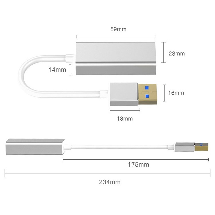 Cáp USB 3.0 to Lan Gigabit vỏ nhôm cao cấpCáp USB to Lan Ethernet 10/100/1000 Mbps cho Macbook, PC, Laptop