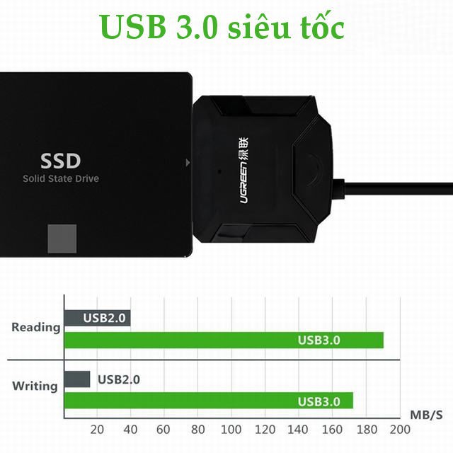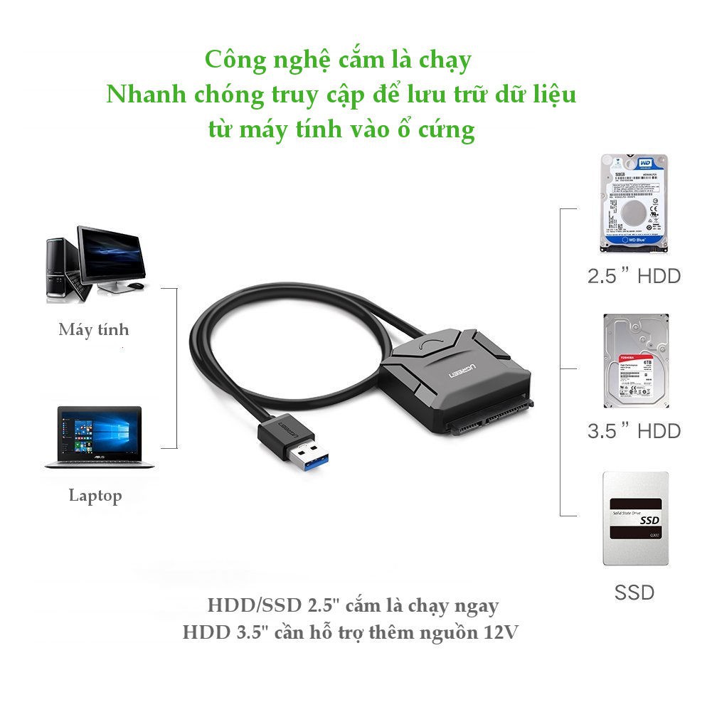 ✪ USB To Sata 3.0 Ugreen 20611 - 20231 cho phép kết nối USB 3.0 với một ổ cứng SATA 2,5 inch, 3,5 inch và ổ cứng SSD.
