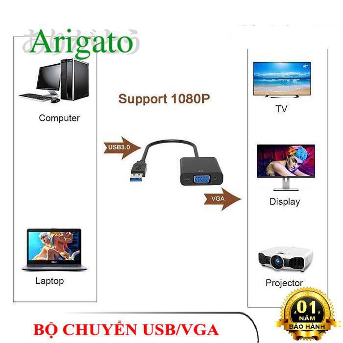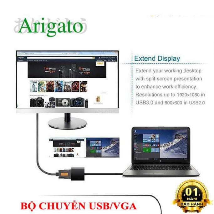 Cáp USB 3.0 to VGA Cáp chuyển đổi USB sang VGA ARIGATO Đảm Bảo Chất Lượng