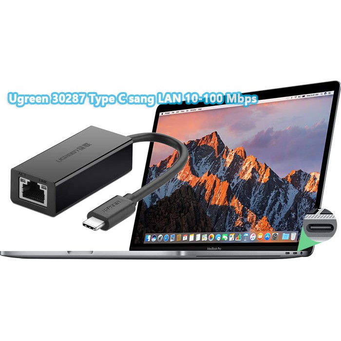 USB 3.1 Type C to Lan 10/100Mb Ethernet Ugreen 30287Ugreen 30287 kết nối mạng Lan từ thiết bị hỗ trợ USB-C như: Macbook 12 inch, Lenovo Yoga 900 13", Google Chormebook Pixel ..v.v với Modem, Router ..