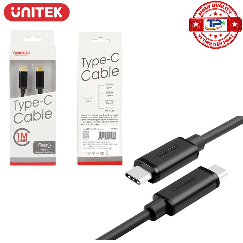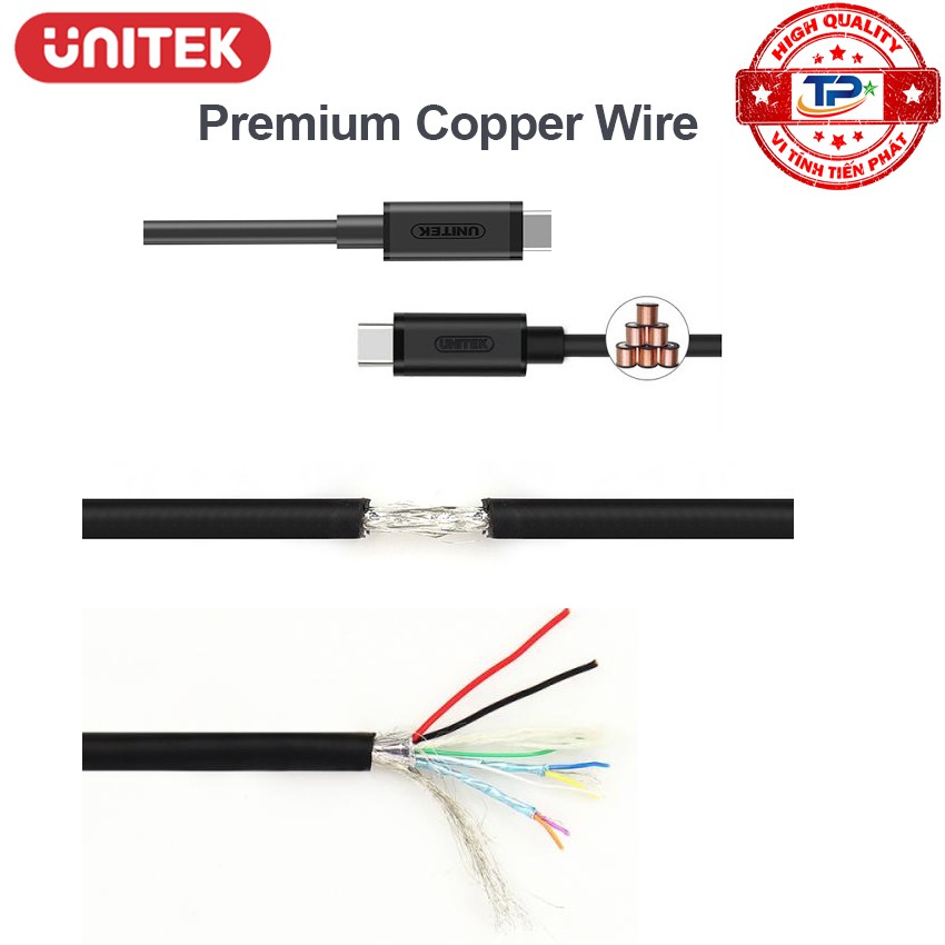 Thương hiệu unitek nổi tiếng về chất lượngCáp USB 3.1 USB Type-C 2 đầu đực (male to male)