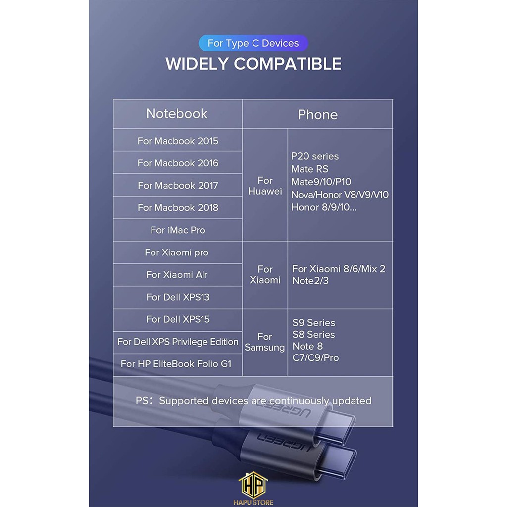 Giới thiệu Cáp USB-C to USB-C Ugreen 50751 dài 1,5m chính hãng - Hapustore