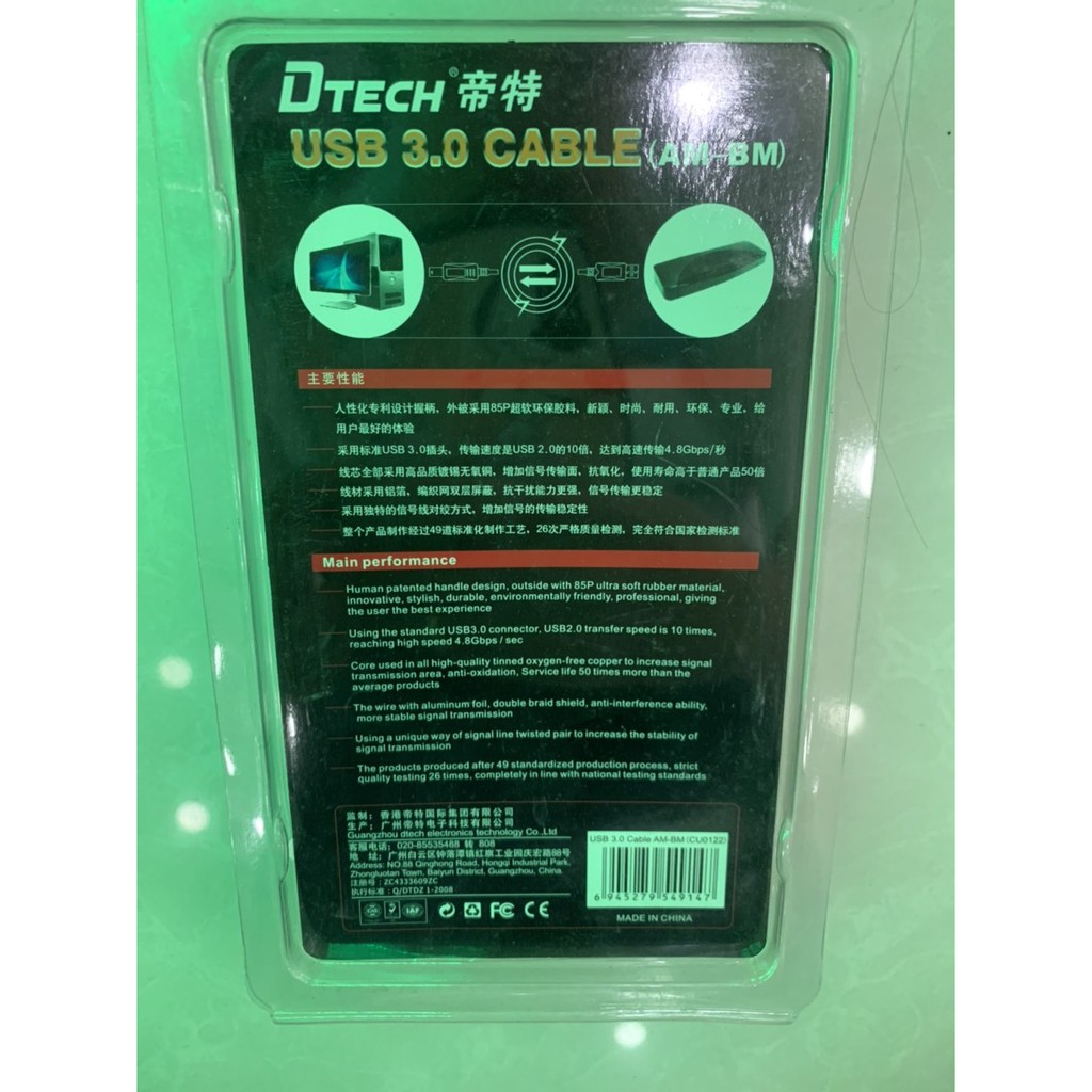 Máy tính & Laptop > Thiết Bị Lưu Trữ > USB & OTG || Cáp usb in Dtech 1.8m CU 0122 (3.0) , Cáp Máy in cổng usb 3.0 Dtech 1.8m CU 0122Còn hàng