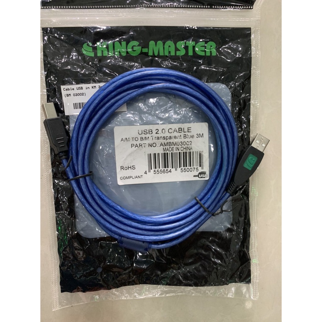Cáp USB in Kingmaster 2.0 dây xanhChiều dài :vs màu sắc : 3m BM 03002 , 10m BM 10001 dây xanh