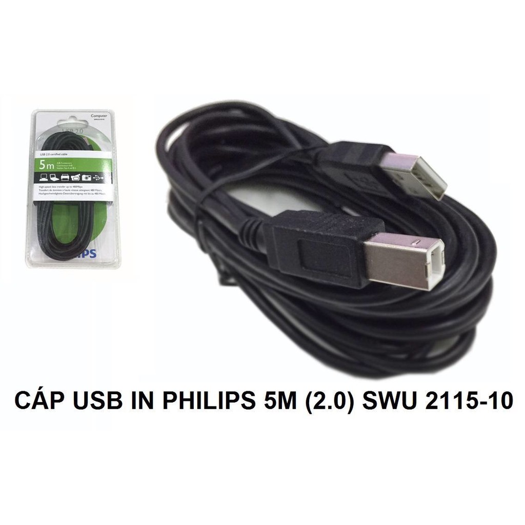 Máy tính & Laptop > Thiết Bị Lưu Trữ > USB & OTG || Cáp USB in Philips 2.0 1.8m SWU 2112/10 , 3m SWU 2113/10 , 5m SWU 2115/10Còn hàng