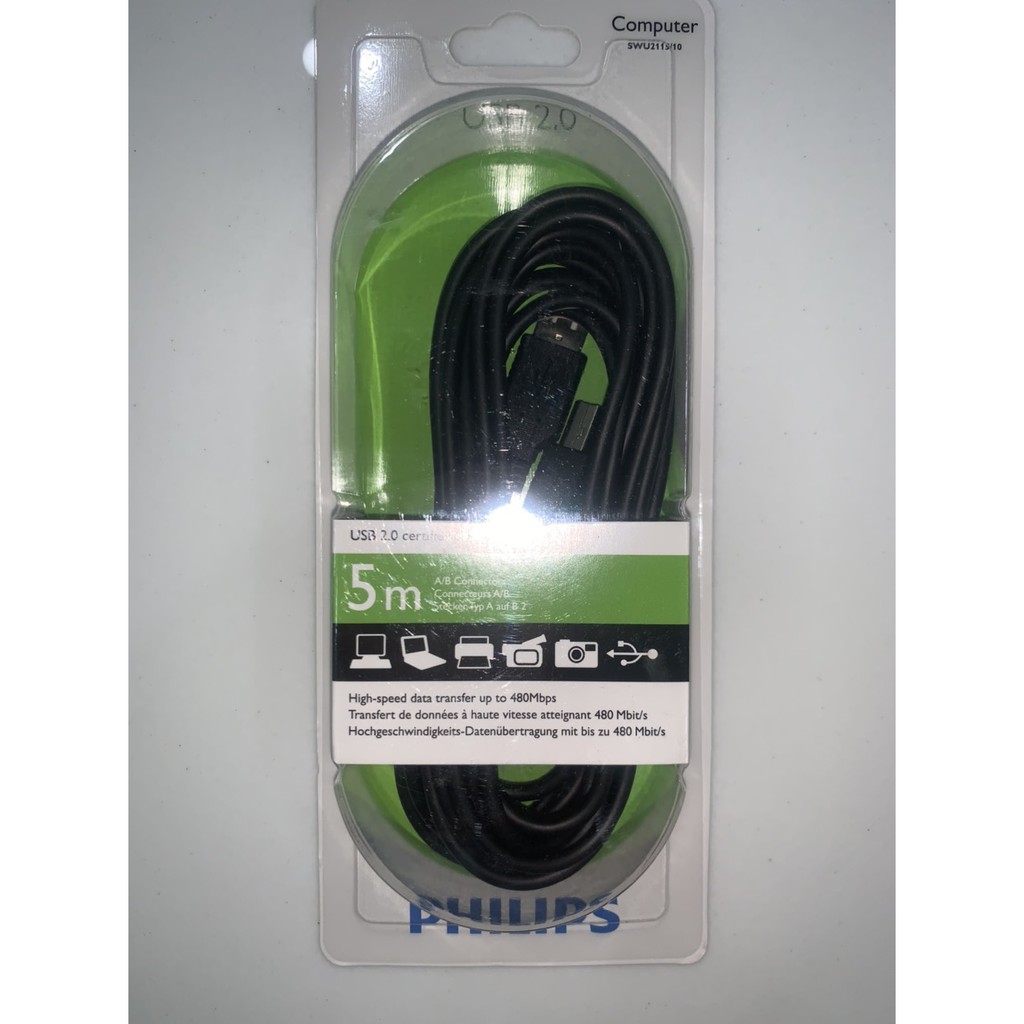 Giới thiệu Cáp USB in Philips 2.0 1.8m SWU 2112/10 , 3m SWU 2113/10 , 5m SWU 2115/10