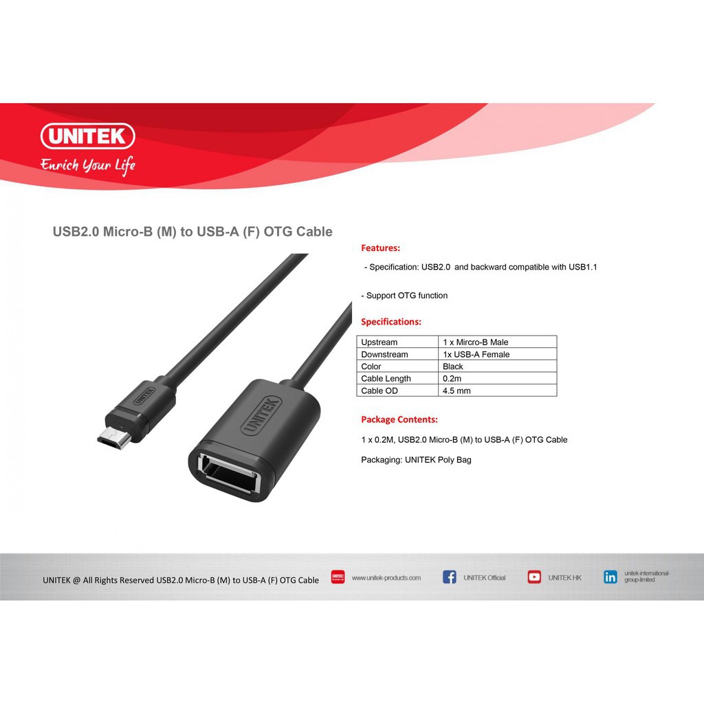 Máy tính & Laptop > Thiết Bị Lưu Trữ > USB & OTG || CÁP USB MICRO OTG 2.0 UNITEK YC 438 GBK 20CMCòn hàng