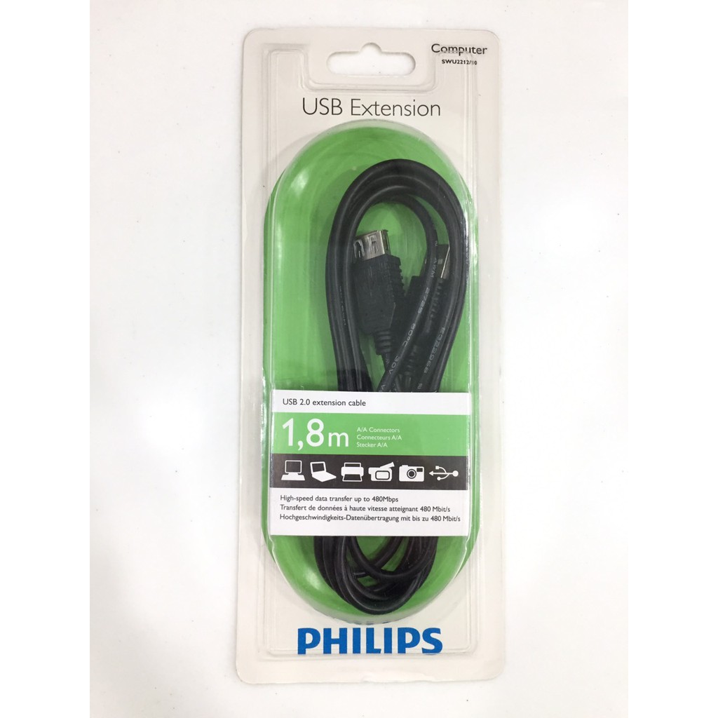 Cáp usb nd 2.0 Philips SWU2212/10Cáp usb 2.0 nối dài1.8m đấu đực đầu cái Philips - Hàng chính hãng có tem chống hàng giả