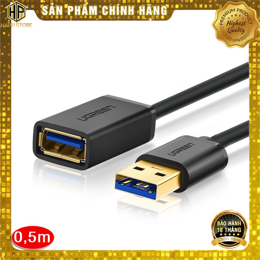 Máy tính & Laptop > Thiết Bị Lưu Trữ > USB & OTG || Cáp USB nối dài 0.5M Ugreen 30125 chuẩn USB 3.0 tốc độ cao chính hãng - HapustoreCòn hàng
