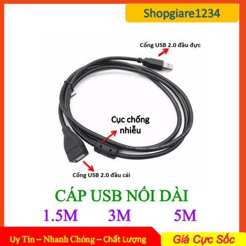 Máy tính & Laptop > Thiết Bị Lưu Trữ > USB & OTG || Cáp USB Nối Dài 1.5M/ 3M/ 5M Chống Nhiễu - Cổng USB 2.0 - Màu đen - Full Box, Bảo hành 1 ThángCòn hàng