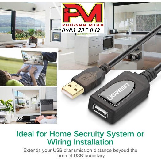 - Cáp USB nối dài 15m chính hãng Ugreen UG-10323 có thể được sử dụng để mở rộng các thiết bị USB của bạn, như máy in USB, loa, máy quét, bàn phím, wifi, vv lên đến 10-30m mà không bị mất tín hiệu đáng kể hoặc giảm chất lượng.