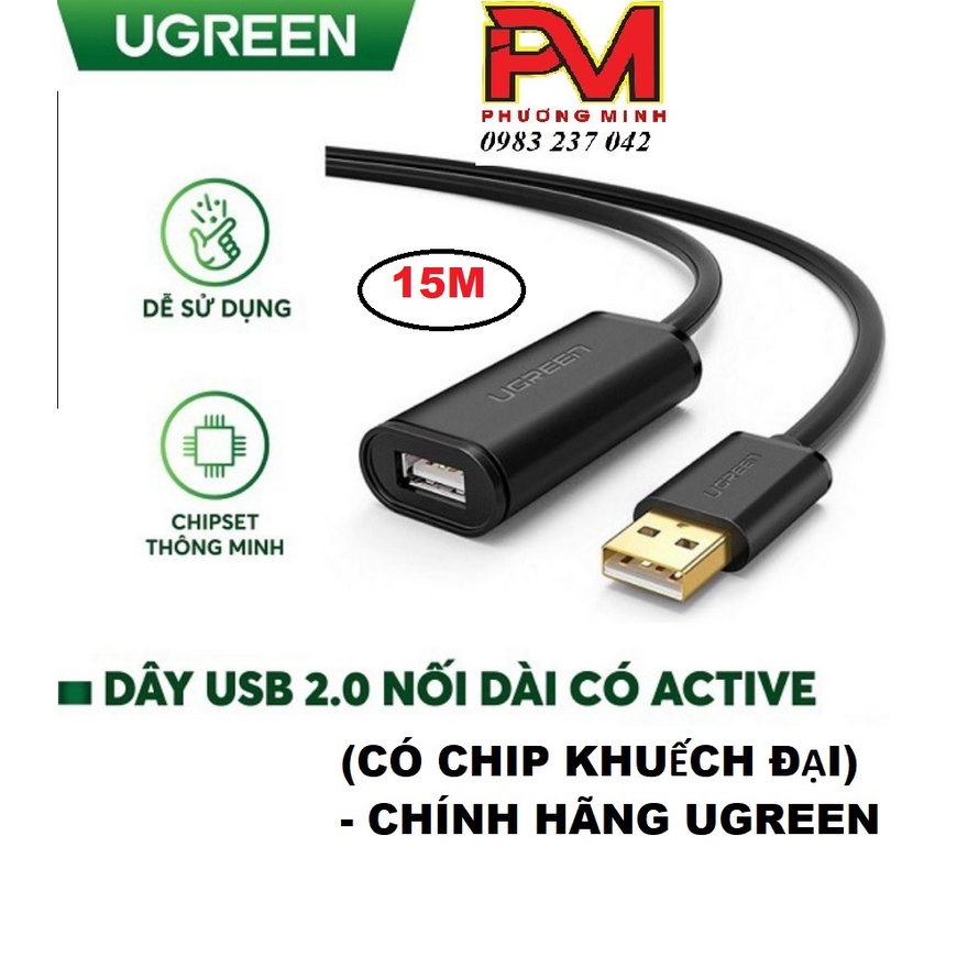 Cáp USB nối dài 15m có chíp khuếch đại chính hãng Ugreen 10323 CAO CẤPThông số kỹ thuật : Cáp nối dai USB 15m Ugreen UG-10323