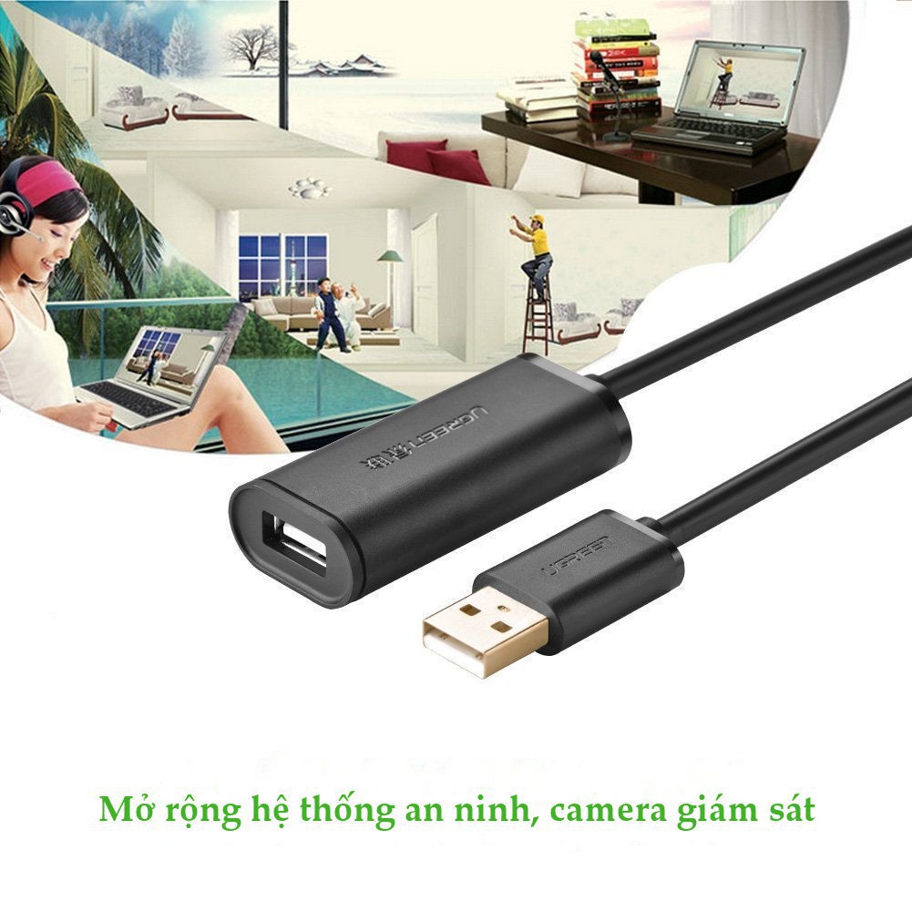 Cáp USB Nối Dài 15m Ugreen 10323 Có Chip Khuếch Đại - Hàng Chính Hãng