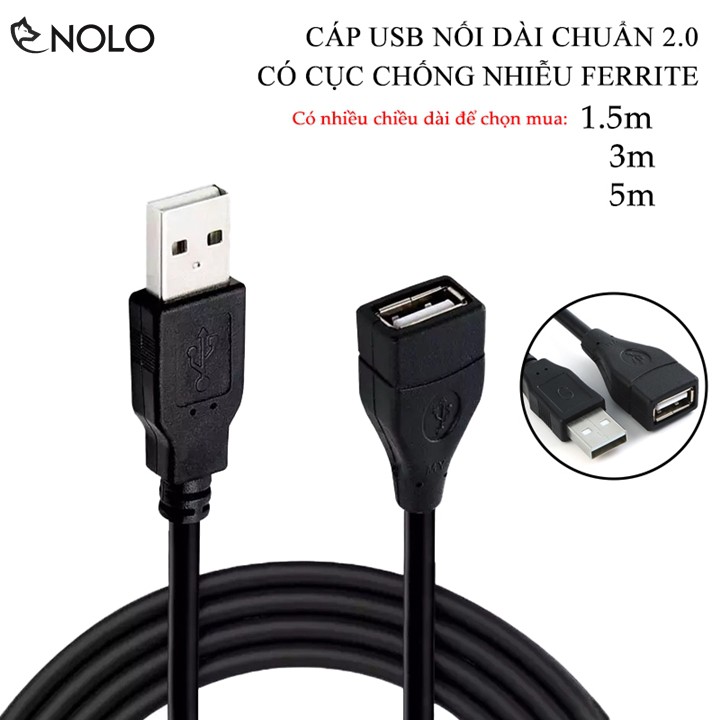 Máy tính & Laptop > Thiết Bị Lưu Trữ > USB & OTG || Cáp USB Nối Dài 2.0 Có Nhiều Chiều Dài 1.5m 3m 5m Tích Hợp Cục Chống Nhiễu Ferrite Bead Chất Liệu Vỏ Ngoài PVCCòn hàng