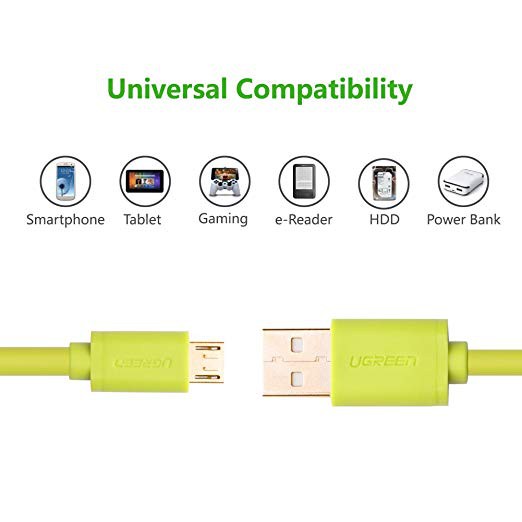 Giới thiệu Cáp USB sang micro USB 2.0 10877 1.5M Chính Hãng UGREEN US125 (Xanh Lá) (Cáp sạc Android)