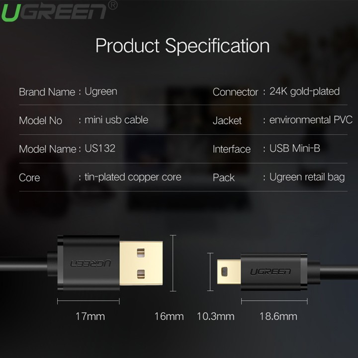 Giới thiệu Cáp USB sang mini USB 1.5m UGREEN 10385_Hàng chính hãng bảo hành 18 tháng