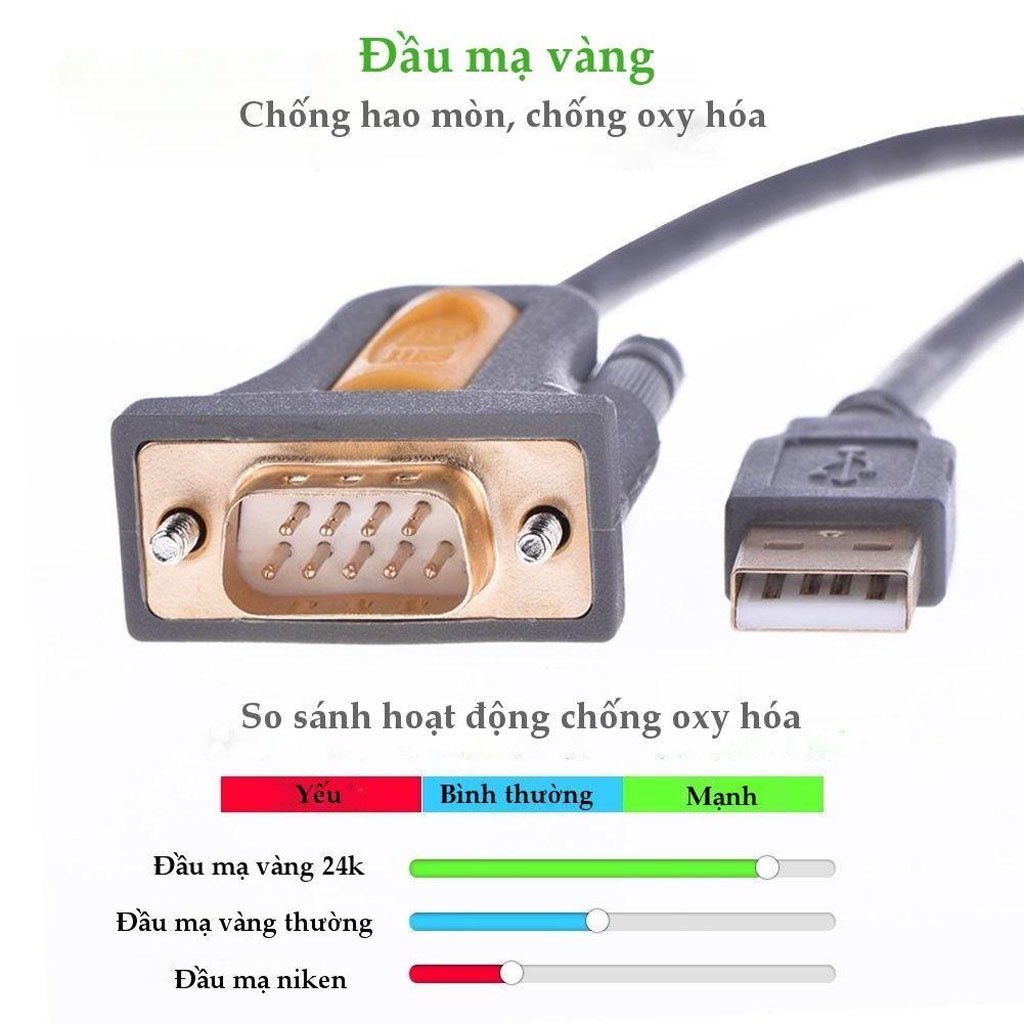 THÔNG TIN SẢN PHẨM : Cáp USB to Com Ugreen cao cấp đầu mạ Vàng.- Hãng sản xuất : Ugreen