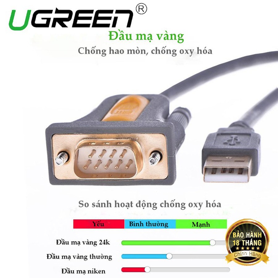 Cáp USB to Com RS232 DB9 Ugreen 20211 dài 1.5m chính hãng - HapuStore