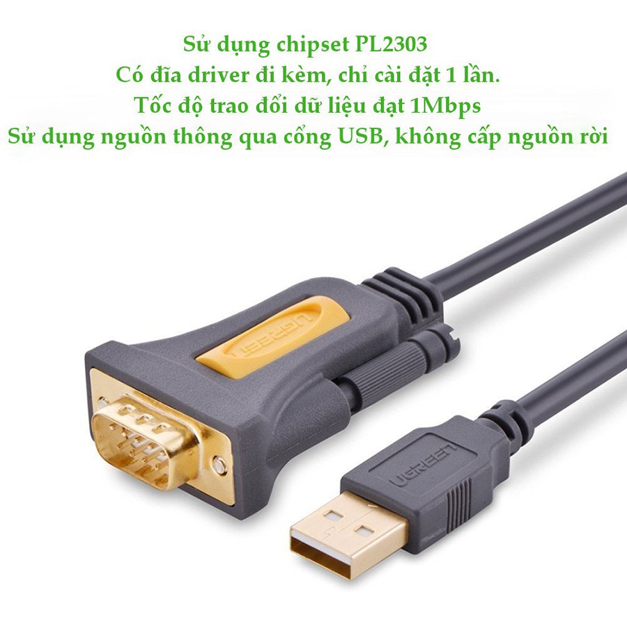 Máy tính & Laptop > Thiết Bị Lưu Trữ > USB & OTG || Cáp USB to Com RS232 DB9 Ugreen 20211 dài 1.5m chính hãng - HapuStoreCòn hàng