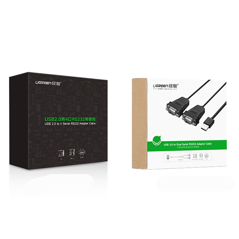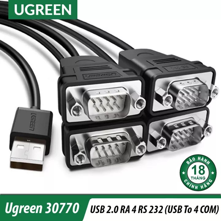 Cáp Chuyển USB 2.0 Sang 2 Cổng COM RS232 Cao Cấp Ugreen 30769Cáp USB to RS232 chính hãng Ugreen 30770 là phụ kiện giúp bạn nối máy tính, laptop cổng USB với các thiết bị công nghiệp như máy CNC, cảm biến, máy quét mã vạch, cân điện tử... Ugreen 30770 có thể giúp bạn kết nối cùng lúc 4 thiết bị mà tín hiệu vẫn đảm bảo ổn định ở tốc độ truyền tải dữ liệu lên đến 1M/bps, tốc độ truyền lập trình từ 75bit đến 128.000 bit/ giây.