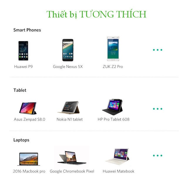 - Thiết bị tương thích: Macbook 2015 & 2016, Samsung S8/S8 Plus, Google Nexus 5X/Nexus 6P, Google Pixel, Microsoft Lumia 950 XL/950, LG V20 G5 G6, OnePlus 5, 5T, OnePlus 3T or OnePlus 3, Huawei honor 8/9, P9/P10, Mate9/Mate10, Sony XZ, Xiaomi 4S, 4C, 5X, 5C, 5S, MAX 2, Note 2...