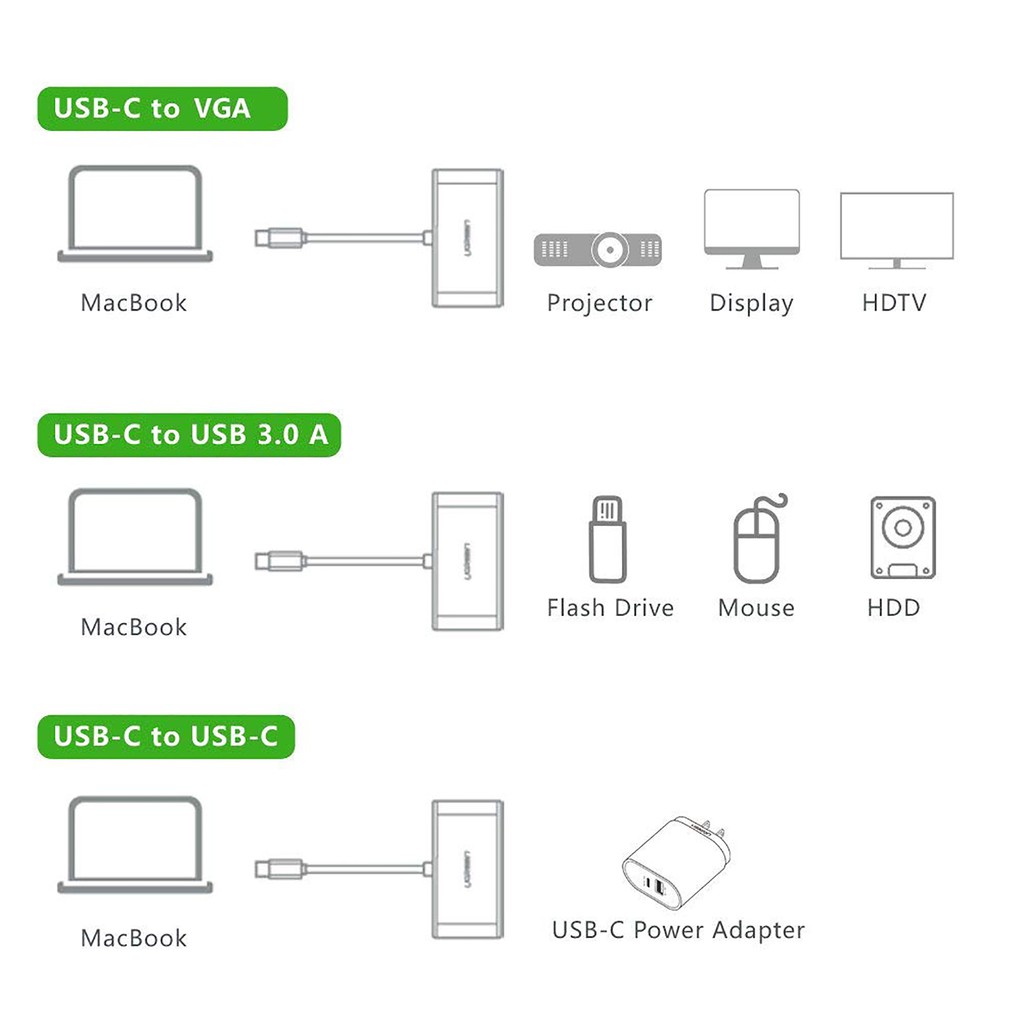 Giới thiệu Cáp USB Type-C Ra VGA/USB 3.0/Sạc Type-C Cao Cấp UGREEN