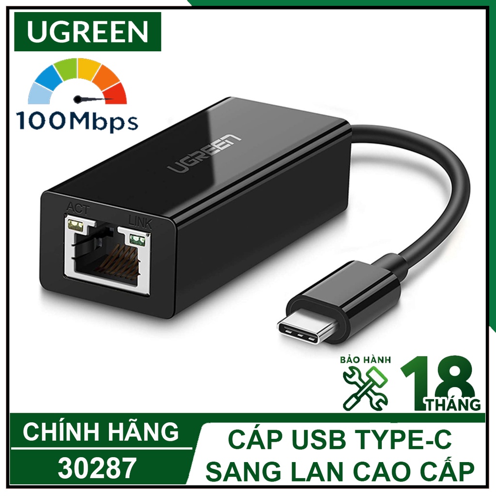 Cáp USB Type-C Sang LAN Cao Cấp, UGREEN 30287 Chính Hãng, Tốc độ truyền 100MbpsMÔ TẢ CHI TIẾT: