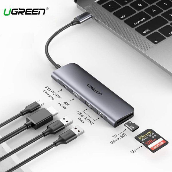 Giới thiệu Cáp USB Type C to HDMI, USB 3.0, đọc thẻ SD/TF, hỗ trợ sạc USB C Ugreen 70411