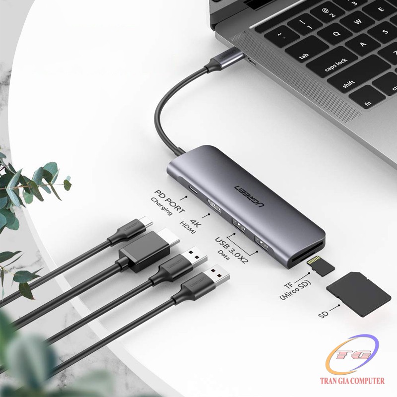 Máy tính & Laptop > Phụ Kiện Máy Tính > Bộ chia cổng USB & Đọc thẻ nhớ || Cáp USB Type C to HDMI, USB 3.0, đọc thẻ SD/TF, hỗ trợ sạc USB C Ugreen 70411Còn hàng