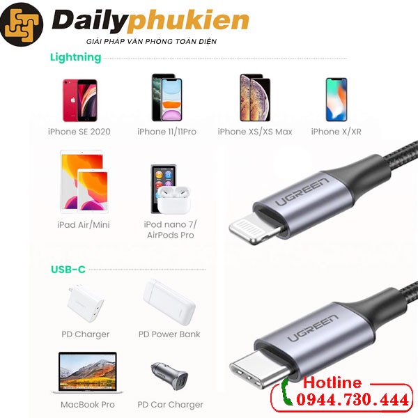 Cáp USB Type C to Lightning dài 1m Ugreen 60759 dailyphukien
