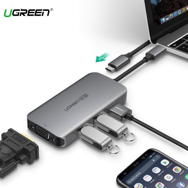 Cáp USB Type C to VGA, Hub USB 3.0 Ugreen 50210 chính hãng
