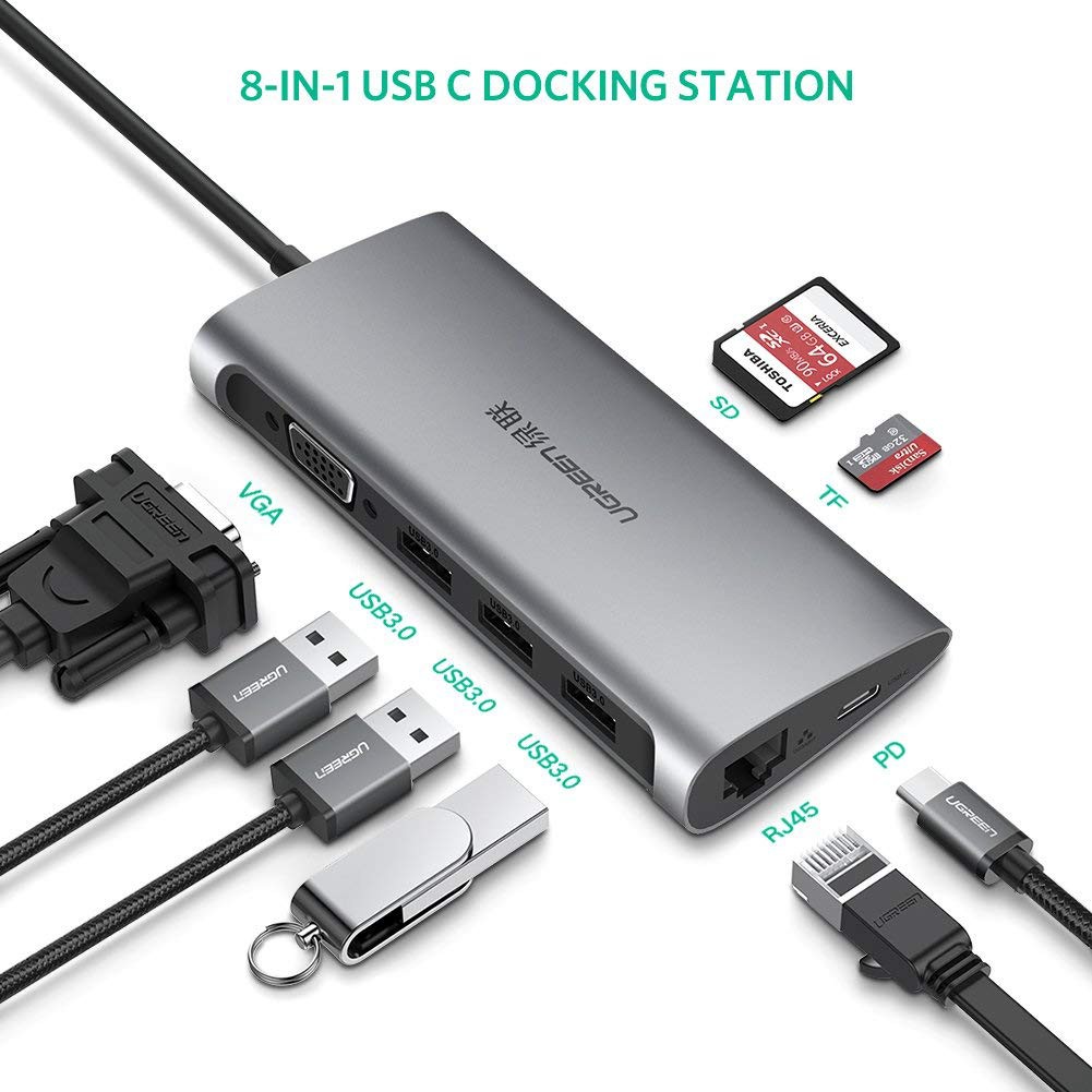 Giới thiệu Cáp USB typeC to VGA/USB 3.0/SD/TF/Lan Ugreen 50539