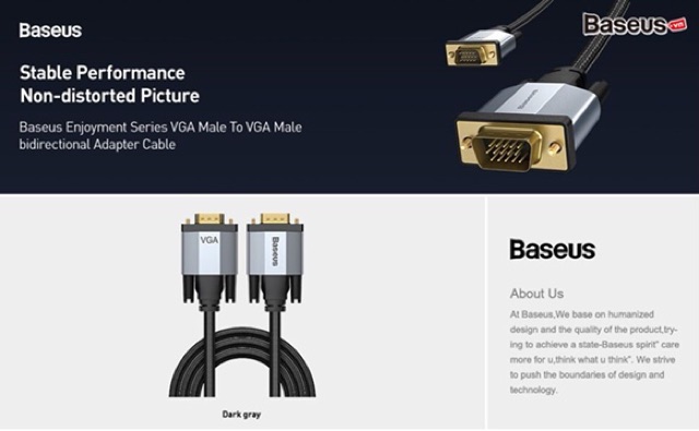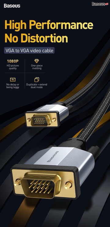 Giới thiệu Cáp VGA 2 đầu đực độ nét cao Baseus Enjoyment Series