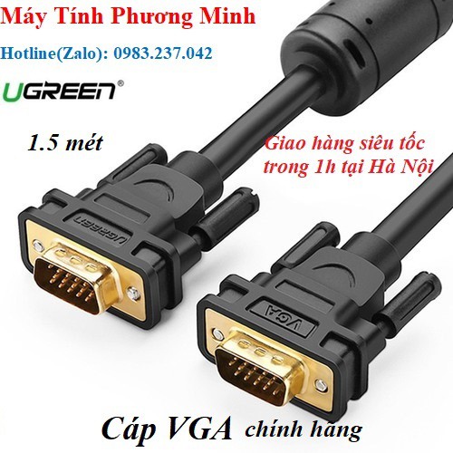 Cáp VGA 1,5M cho Màn Hình, Máy Chiếu cao cấp Ugreen 11630_Hàng chính hãng bảo hành 18 thángCáp VGA 2 đầu đực