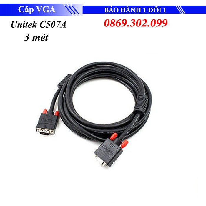 Cáp VGA Unitek C504A dài 3m - Kết nối PC tới PC, PC và Laptop tới Tivi LCD và Máy chiếu