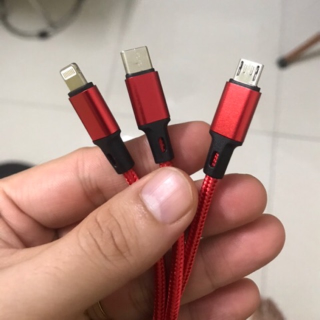 Điện Thoại & Phụ Kiện > Phụ kiện > Cáp, sạc & bộ chuyển đổi > Cáp & Bộ chuyển đổi di động || CAP10 - Cáp sạc 3 đầu dây dù loại đẹp (sạc nhanh)Còn hàng