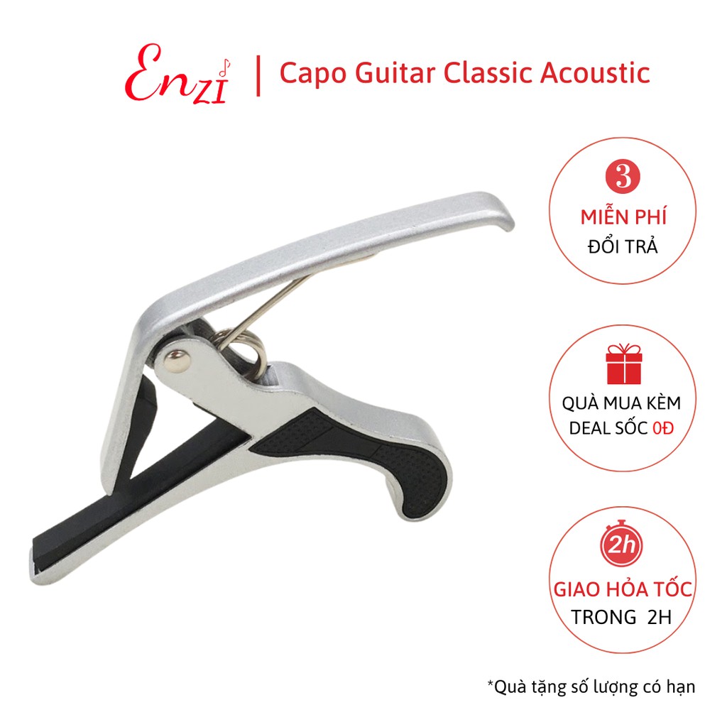 Sở thích & Sưu tầm > Nhạc Cụ & Phụ Kiện > Phụ Kiện Âm Nhạc || Capo guitar classic acoustic Enzi tăng tông, hạ tông màu Bạc không thể thiếu khi chơi ghi taCòn hàng
