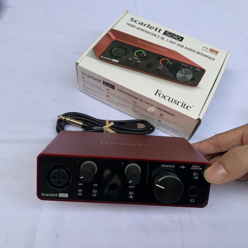 Giới thiệu sản phẩmĐây là phiên bản đời thứ 3 cổng giao tiếp USB-C từ Focusrite được nâng cấp chất lượng âm thanh và kiểu dáng mới, với nhiều tính năng đáp ứng chất lượng thu âm rõ ràng, trong sạch, làm nhạc cá nhân và trong studio, nghe nhạc lossless chất lượng cao của những tín đồ âm thanh. Soundcard thu đơn nhỏ gọn, tiện lợi, ngoại hình bắt mắt và kiểu dáng hiện đại như Scarlett Solo cũng rất thuận tiện di chuyển, bạn có thể mang đến bất cứ đâu để thu âm, kiểm âm, giải trí,...
