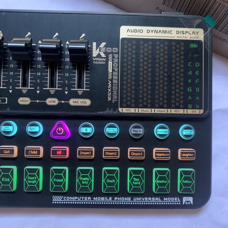 Các nút bấm và núm chỉnh của soundcard k500 hoạt động hiệu quả và bền. Có các chức năng chỉnh tần số giọng, bass trable, âm lượng giọng, âm lượng nhạc nền… Ngoài ra còn có các núm chỉnh tiếng vang (giọng vang nhiều hay vang ít – echo) và các nút bấm chỉnh hiệu ứng giọng. Sound card k500 có thể đổi giọng người dùng thành giọng trẻ con, giọng phụ nữ, ông già. Thích hợp cho việc live stream trên các nền tảng như facebook, tiktok, bigo…