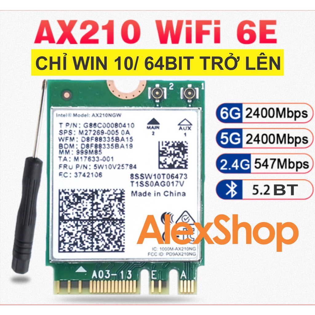 Máy tính & Laptop > Thiết Bị Mạng > Bộ Thu Wifi || Card AX210/200/201 Wifi 6E/WiFi6 3000M Bluetooth 5.2/ 5.0 Khe Cắm m2 Thích Hơp cho PC Laptop Adapter gắn Card WiFiCòn hàng