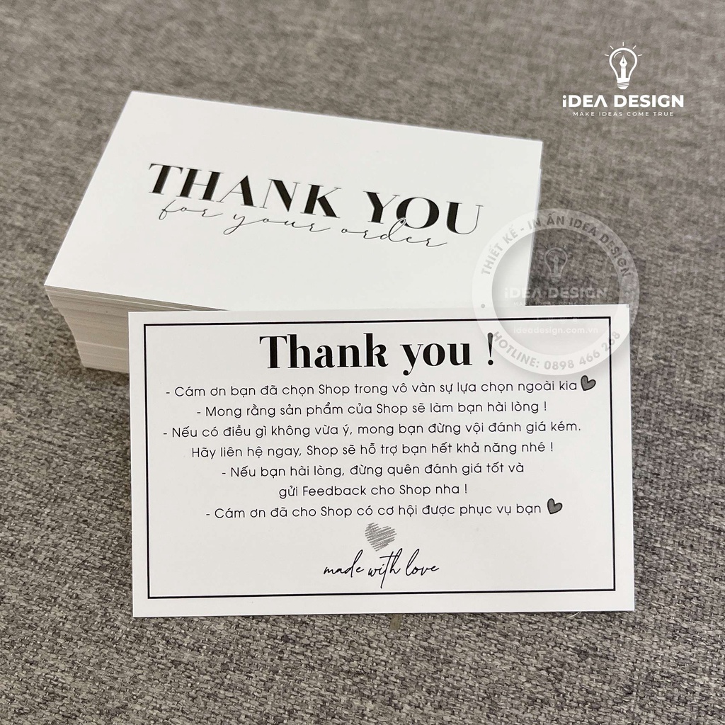 - Khách mua số lượng trên 1.000card/mẫu, hãy liên hệ iDea Design để được giá tốt.