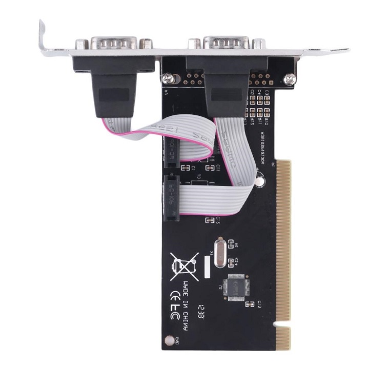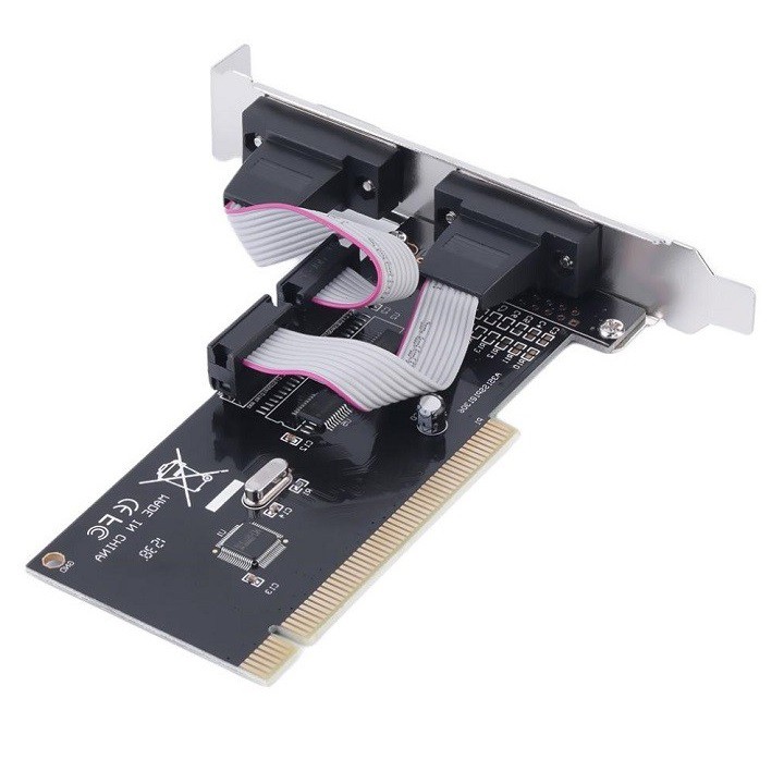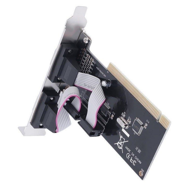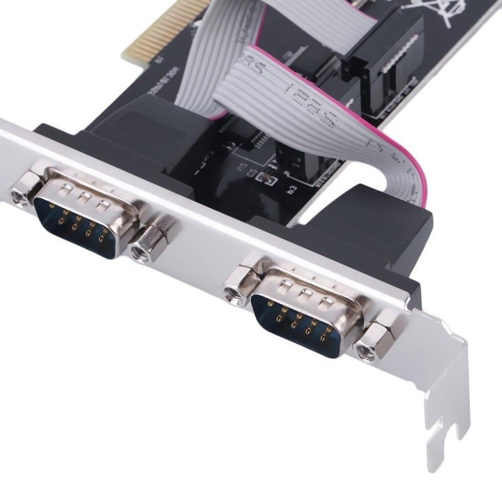- Card PCI to 2 COM cung cấp 2 cổng COM. Cổng COM được dùng để kết nối máy tính với các thiết bị điều khiển như các máy thiết bị y tế, các thiết bị tự động hóa, các case ATM, các máy thiết bị siêu thị...
