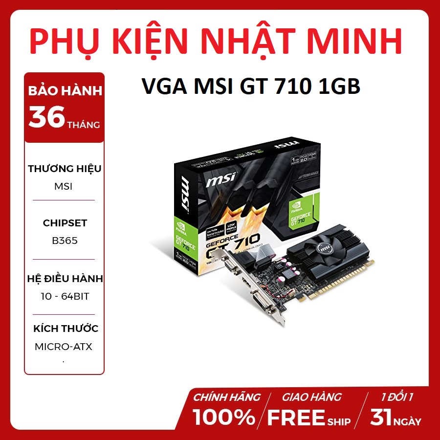 Máy tính & Laptop > Linh Kiện Máy Tính > VGA - Card Màn Hình || Card Màn Hình các hãng MSI, galax, Inoo3d, GeForce GT 710 1GB DDR3 mới chính hãng bảo hành 3 nămCòn hàng
