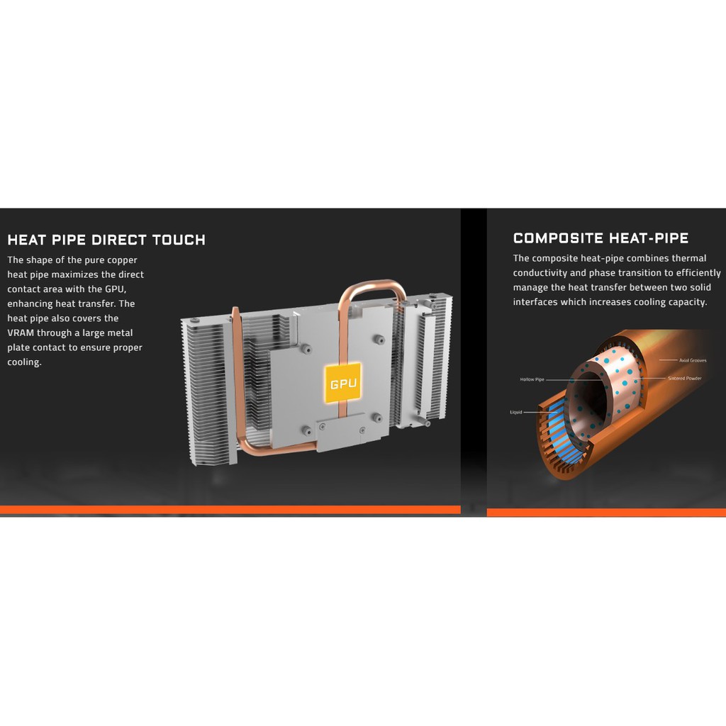 Không chỉ dựa vào thiết kế hướng gió thông minh, mà mỗi chiếc quạt làm trên GeForce GTX 1660Ti 6GB GDDR6 OC đều có thiết kế cánh quạt giúp tăng lưu lượng và lực ép của không khí đi qua quạt làm mát. Cộng thêm việc hệ thống làm mát của card sẽ tự động dừng toàn bộ quạt làm mát lại ở nhiệt độ thấp, đem lại sự cân bằng giữa nhiệt độ và độ ồn.