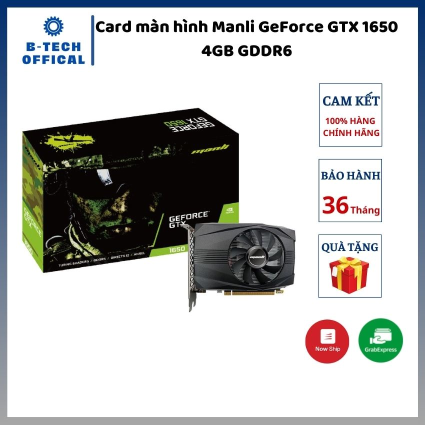 Máy tính & Laptop > Linh Kiện Máy Tính > VGA - Card Màn Hình || Card màn hình Manli GeForce GTX 1650 4GB GDDR6 - Hàng chính hãng bảo hành 36 thángCòn hàng