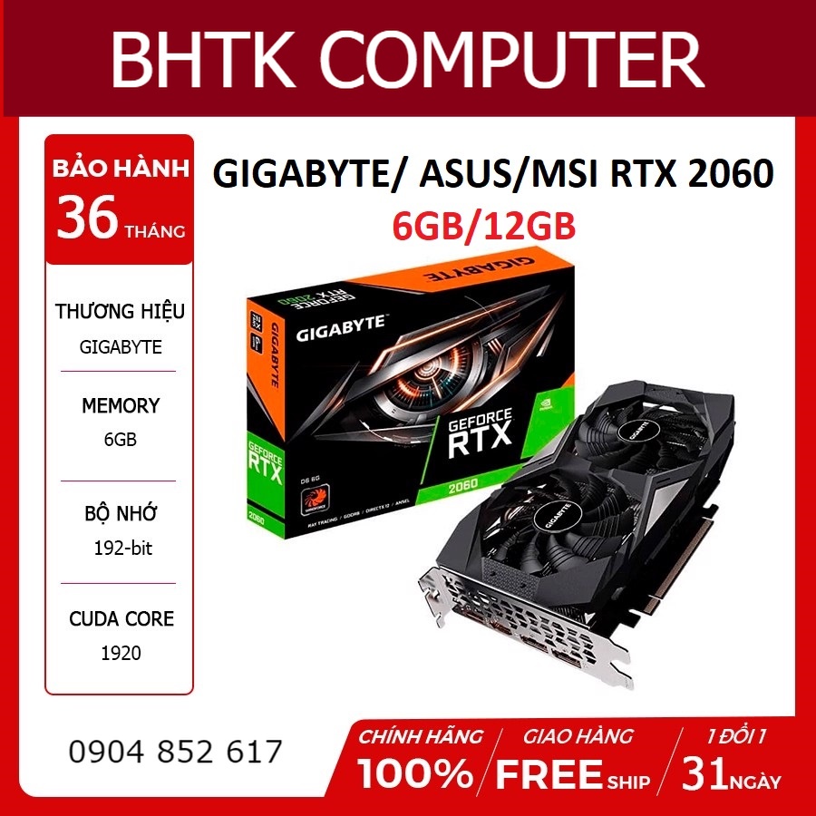 Máy tính & Laptop > Linh Kiện Máy Tính > VGA - Card Màn Hình || Card màn hình VGA RTX 2060 các hãng gigabyte/ asus/ msi 6gb/12gb full new chính hãng bảo hành 36 thángCòn hàng