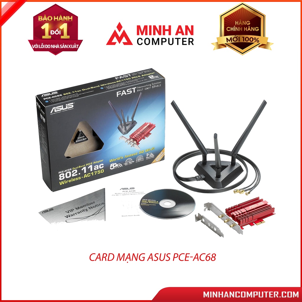 Card mạng không dây ASUS PCE- AC68 - chuẩn PCI-E tốc độ 1900MbpsChất liệu: Kim loại